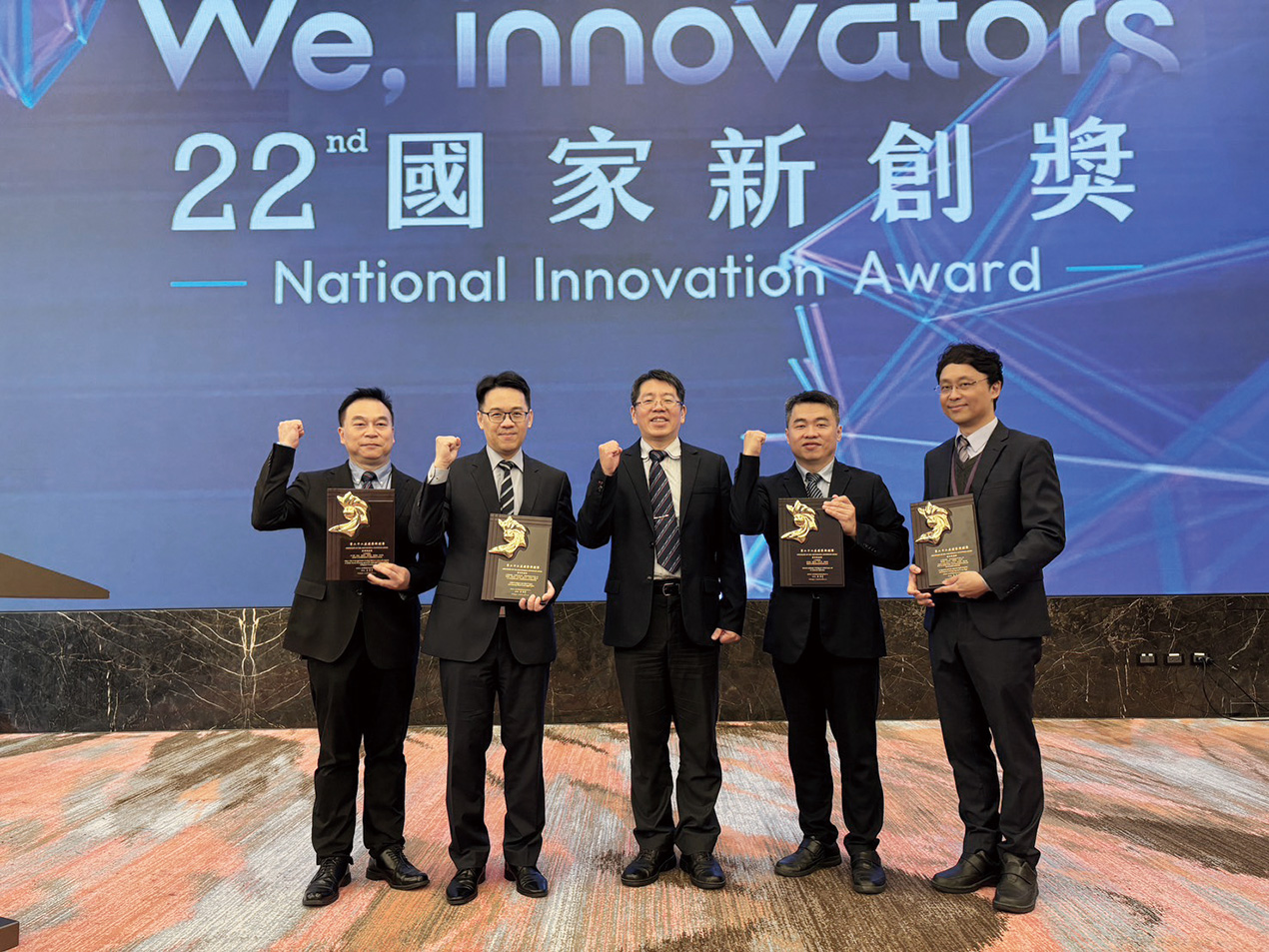 第22屆國家新創獎授獎典禮暨醫療創新Demo Day於12月17日於台北漢來大飯店3樓鉑金廳舉行,本院榮獲5項國家新創獎暨3項國家新創精進獎肯定,由吳家兆副院長率跨科團隊出席,凸顯國軍醫療體系在AI驅動醫療技術的研發與應用實力。